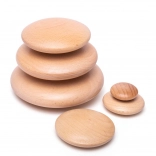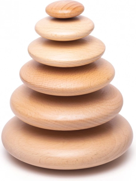 Questo gioco di equilibrio aperto, senza istruzioni, invita i bambini a dare spazio alla fantasia: possono costruire torri, creare figure, ordinare per dimensione oppure trasformare i ciottoli in una decorazione di stile per la cameretta. L’aspetto naturale e la superficie liscia del legno offrono un’esperienza tattile piacevole e un gioco calmo e concentrato.