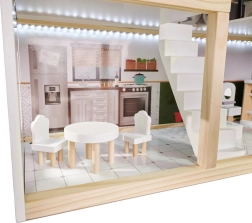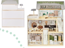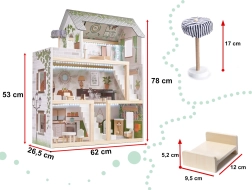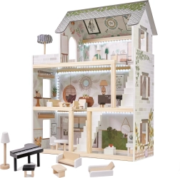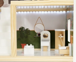 Scopri il magico mondo dei giochi con una casetta in legno per bambole LULILO Floro in stile boho, che trasporterà il tuo bambino in un mondo di fantasia e creatività. Una casetta su tre piani con illuminazione LED e dettagli raffinati offre ore di divertimento e sviluppa l'immaginazione dei bambini.