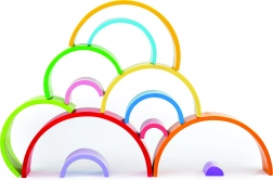 Il grande arcobaleno in legno è un giocattolo educativo intramontabile che favorisce il gioco libero senza regole. I bambini possono impilare gli archi, sovrapporli, collegarli e combinarli con altri set – le possibilità sono praticamente infinite. Grazie alla struttura robusta e alla superficie liscia, l’arcobaleno è piacevole da maneggiare e resiste al gioco quotidiano.
