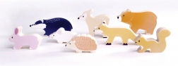 Il set unisce gioco e apprendimento e permette ai bambini di esercitare le abilità motorie impilando gli animaletti uno sull’altro.