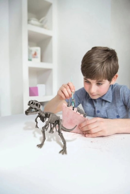 Dopo lo scavo, le parti dello scheletro si assemblano facilmente in un modello 3D di tirannosauro con attenzione ai dettagli. Il modello finito è perfetto come decorazione e strumento didattico.