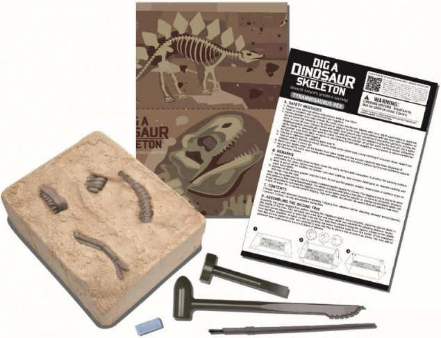 Il set include un blocco di gesso con le ossa, strumenti base per lo scavo e un manuale. Basta aprire la scatola e iniziare a esplorare – attività ideale per il pomeriggio e il weekend.