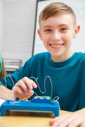 Grazie ai componenti facili da assemblare, i bambini acquisiscono i principi base dell’elettricità: quando l’anello tocca il conduttore, il circuito si chiude e il cicalino suona.