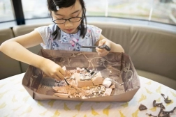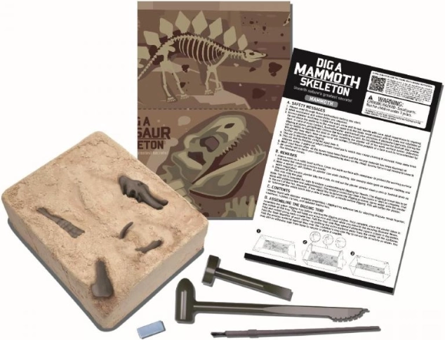 Dopo aver scavato i pezzi, i bambini assembleranno un dettagliato modello in plastica del mammut – un ottimo pezzo sia didattico che decorativo.