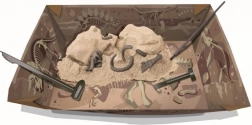 Vivi un vero scavo archeologico. Il blocco di gesso nasconde le singole parti dello scheletro che i bambini porteranno alla luce con gli strumenti inclusi.