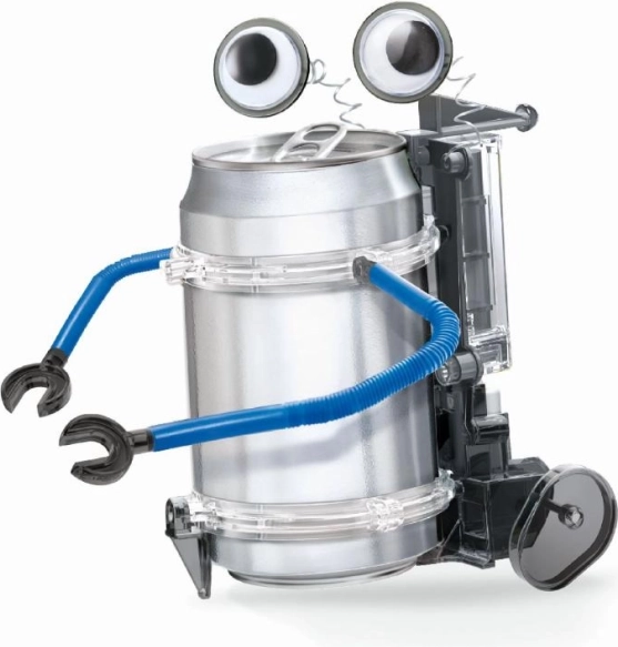 Nella confezione sono inclusi tutti i componenti necessari tranne la lattina. Con l’aiuto delle istruzioni illustrate, i bambini assembleranno passo dopo passo il robot, che potranno decorare con occhi mobili e braccia flessibili. Nasce così un giocattolo originale che sviluppa con facilità le competenze STEM.