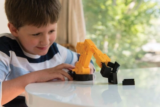 Il meccanismo motorizzato riproduce fedelmente il movimento dei bracci industriali ed è ideale per muovere i primi passi nella meccanica e nell'elettrotecnica. Il kit favorisce l'apprendimento per progetti e introduce in modo divertente i principi STEM/STEAM.