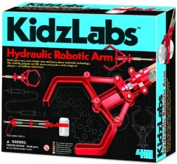 Scopri come funziona l'idraulica nella pratica. Con il set di componenti assemblerai un braccio robotico funzionante, che controllerai tramite siringhe e acqua. Ogni movimento del braccio e delle pinze è fluido e preciso, così potrai afferrare e trasferire facilmente piccoli oggetti – il tutto senza elettronica.