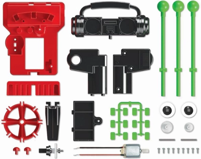 Il set include pezzi di plastica colorati e aste verdi, che si assemblano in un robot in grado di suonare la batteria. Il processo di montaggio supporta il ragionamento logico e abilità manuali, offrendo un ottimo modo di unire divertimento e apprendimento.