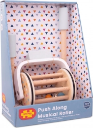 Splendidamente lavorato, il rullo musicale in legno 100% FSC® non solo supporta la motricità, ma anche le competenze sensoriali dei tuoi figli. Grazie al suo movimento e al suono del campanello che si dondola tra le doghe di legno, il bambino sviluppa la sua capacità uditiva. Il giocattolo è costituito da una combinazione di legno naturale e colorato, mentre i colori stimolano la percezione visiva.
