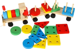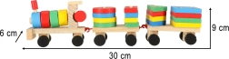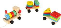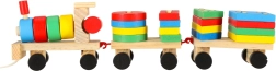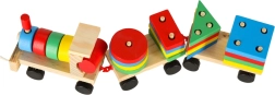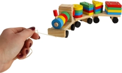 Un adorabile trenino in legno con locomotiva e due vagoni è un fantastico gioco per bambini dai 3 anni. Include blocchi colorati e un sorter per esercitare la motricità, imparare forme e colori e sviluppare il pensiero logico. Il trenino ha ruote mobili e una cordicella per trainare, così i bambini si divertiranno con tanto movimento e gioco creativo.
