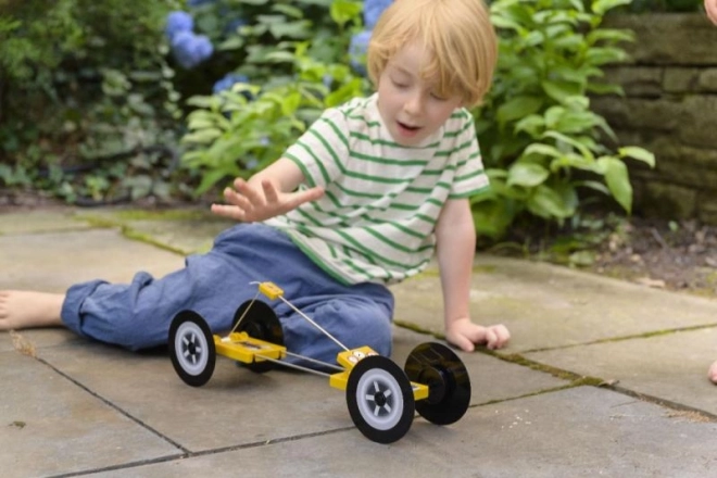 L'auto da corsa KidzLabs mostra ai bambini le nozioni base della fisica attraverso la trasformazione dell'energia dalla trappola in movimento.