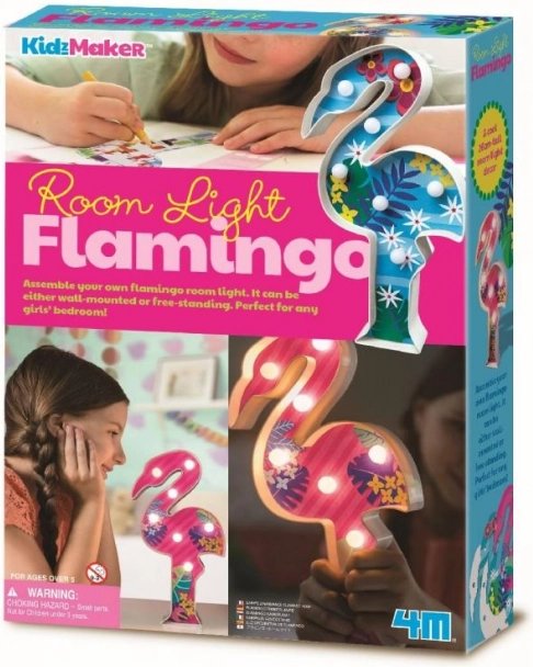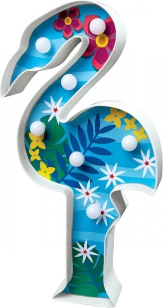 Il design del fenicottero è arricchito da motivi tropicali di foglie e fiori, portando un'atmosfera calda e gioiosa nella stanza.