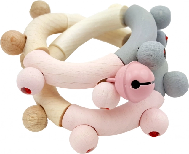 Gli elementi e le perline in legno, lisci al tatto, incoraggiano il bambino ad afferrare, stringere e rotolare, sviluppando così la coordinazione mano-occhio e il senso del tatto.
