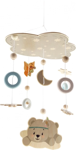 Elegante giostrina sospesa in legno, non solo una splendida decorazione per la cameretta, ma anche un aiuto per lo sviluppo dei sensi e dell’immaginazione dei vostri bambini.