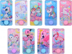 Questo gioco d'acqua offre tanto divertimento e illustrazioni colorate di unicorni e fenicotteri che incanteranno i bambini. Ogni gioco ha pulsanti colorati nella parte inferiore che controllano il movimento degli anelli all'interno del gioco. Non solo intrattiene, ma stimola anche le attività motorie fini.