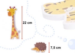 Trasformate il bagnetto in un divertente safari acquatico! Questo set include 18 leggeri animaletti in schiuma che, una volta bagnati, aderiscono alla vasca e alle piastrelle, galleggiano sull’acqua e si asciugano rapidamente. Un ottimo gioco per sviluppare motricità fine, pensiero logico e creatività durante il bagno quotidiano.