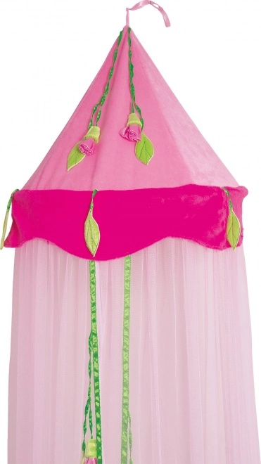 Questo baldacchino è decorato con varie roselline e foglie verdi che donano a ogni stanza un aspetto giocoso ed elegante allo stesso tempo.