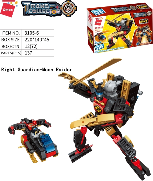 Lasciati trasportare dalla fantasia e creatività con il set di costruzioni Qman Guardiani del nucleo stellare 6 in 1. Questo set include un totale di 908 pezzi di plastica di alta qualità che ti permetteranno di creare modelli straordinari. Ogni set offre due varianti di assemblaggio, garantendo ancora più possibilità di gioco e costruzione. Combinando i pezzi, puoi assemblare un grande modello robotico con diversi livelli di complessità. La compatibilità con altri marchi garantisce un'espansione del mondo di gioco.