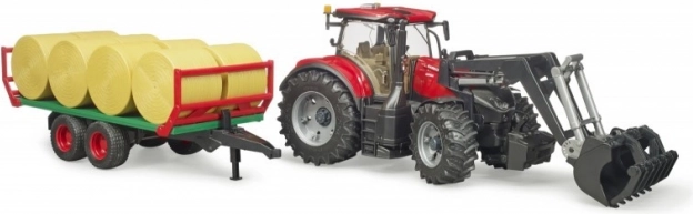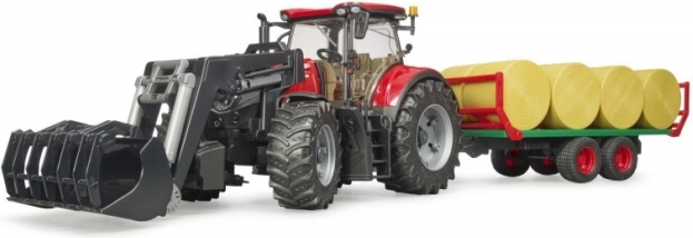 Trattore Bruder Case IH Optum 300 CVX con caricatore frontale e trasportatore per balle