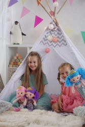 Una graziosa bambola di stoffa a forma di sirenetta con lunghi capelli blu, coda scintillante e coroncina gialla farà felice ogni bambino. Morbida, sicura e ideale per il gioco creativo e per coccolarsi a casa e in viaggio. La dimensione compatta di 30 cm è perfetta per le manine dei bambini.