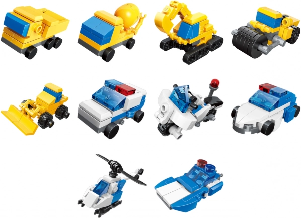 Questo set include 10 diversi modelli tra cui un furgone, un escavatore, un elicottero di pattuglia e altri, garantendo infinite possibilità per i vostri bambini di sviluppare la loro immaginazione.