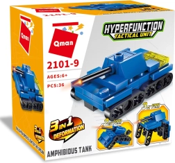 La costruzione Carro Armato Qman 3in1 offre tre opzioni di assemblaggio con vivaci mattoncini di plastica, che possono essere combinati con costruzioni simili. Realizzato in plastico ABS di qualità e resistente.