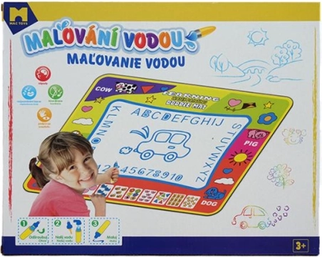 Questo tappetino colorato per disegni ad acqua è uno strumento eccellente per i bambini che amano creare. Supporta la loro creatività, il riconoscimento dei colori e la coordinazione motoria. È molto semplice da usare: riempi la penna magica con acqua e inizia a disegnare. Dopo cinque minuti, il disegno si asciuga e i bambini possono ricominciare. Il set contiene: un tappetino di dimensioni 80 x 60 cm e due penne magiche. Un regalo ideale per i piccoli artisti!