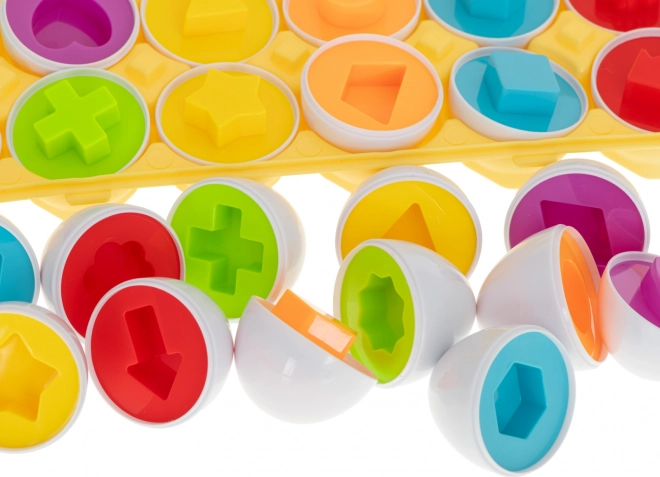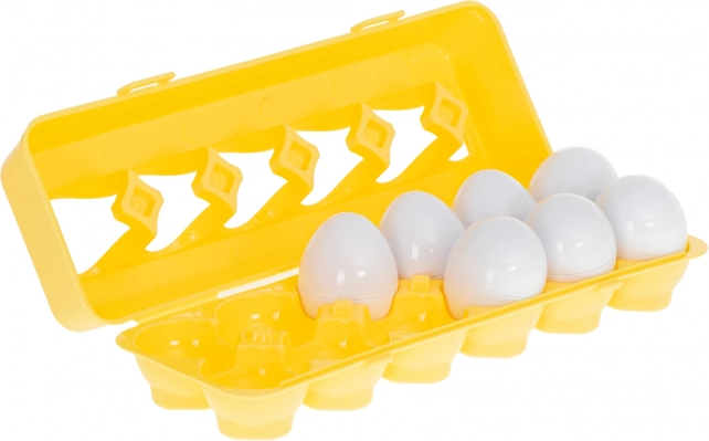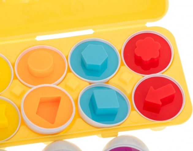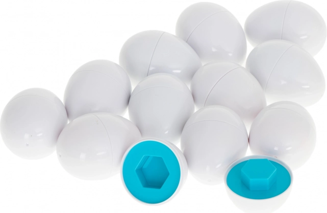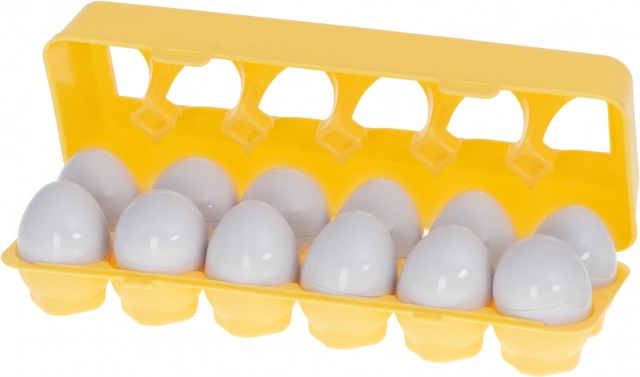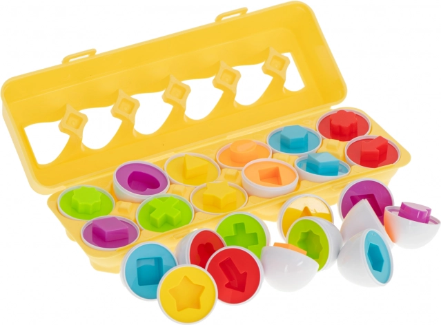 Il set comprende 12 uova con forme e colori diversi nascosti sotto il guscio. Il gioco consiste nell'abbinare metà delle uova secondo forma e colore per creare un insieme. Questa è un'attività non solo divertente ma anche educativa che rafforza il pensiero logico. Le uova sono leggere e facili da trasportare, rendendole ideali per intrattenere durante lunghi viaggi o mentre si attende l'appuntamento dal medico.