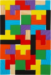 Scopri un puzzle divertente ed educativo ispirato al gioco TETRIS. L'obiettivo è comporre le singole forme in legno seguendo il modello scelto in modo da creare un insieme compatto. Grazie ai colori vivaci e alle forme varie, i bambini allenano immaginazione e pazienza.