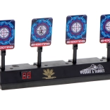Il bersaglio elettronico è un'ottima scelta per allenare la precisione e per un divertimento competitivo a casa. I quattro target indipendenti consentono diverse modalità di gioco: dai duelli di velocità al tiro mirato con il minor numero possibile di dardi. A ogni colpo il bersaglio si abbassa; dopo aver colpito tutti e quattro, ottieni 1 punto e i bersagli tornano automaticamente in posizione iniziale.
