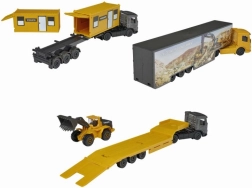Scoprite il realistico camion Volvo in metallo, che conquista per la cura dei dettagli e la versatilità. Potete scegliere tra tre varianti accattivanti – con rimorchio e pala gommata, con due container da costruzione oppure come camion con rimorchio staccabile. Il robusto telaio in metallo garantisce lunga durata e stabilità durante la guida e il gioco.