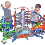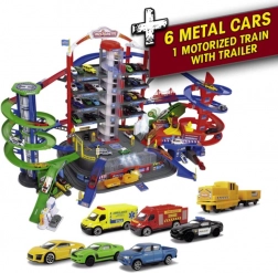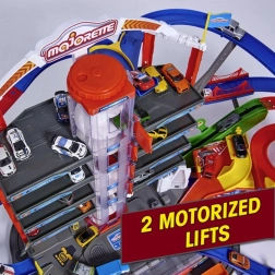 La grande autorimessa da gioco, larga quasi 1,30 m, è la novità più grande nel mondo Majorette! Il garage è composto da sette aree di gioco e offre fino a 35 posti auto e spazi di stoccaggio. Il cuore della stazione è un ascensore a spirale motorizzato che trasporta contemporaneamente fino a nove macchinine in metallo. Una volta in cima, deviatori automatici distribuiscono i veicoli in quattro diverse corsie. Sei diversi effetti luminosi e sonori, nonché innumerevoli stazioni di gioco come la stazione ferroviaria, la stazione di servizio con pompa di benzina, l’officina e l’autolavaggio, la caserma dei pompieri, la stazione di polizia con rifugio segreto e l’eliporto, offrono divertimento senza limiti. Inclusi 6 veicoli in metallo, treno a batteria, scambi automatici, galleria con funzione incidente e 2 ascensori motorizzati. L’elicottero non è incluso. Dimensioni assemblato: 128 x 78 x 73 cm.