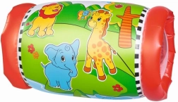 Il rullo gonfiabile di supporto al gattonamento è un accessorio ideale per neonati e bimbi piccoli che iniziano a scoprire il mondo attraverso il movimento. I pannelli laterali trasparenti permettono di osservare due palline sonagli all'interno che, rotolando, producono suoni e incoraggiano il bambino a esplorare ulteriormente. La vivace stampa con animaletti aumenta l'attrattiva e sostiene la percezione visiva.