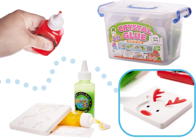Il set contiene gel, stampi, contenitore e bustine con indurente in una scatola compatta. Ideale a casa e in viaggio, per bambini dai 3 anni in su.