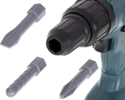 Il trapano è stato sviluppato appositamente per i bambini più piccoli, e pertanto è completamente sicuro per loro! Il giocattolo ha accessori intercambiabili, di cui uno funziona come una sega rettilinea, mentre l'altro è una tradizionale testa "avvitatrice", che permette di montare la punta del trapano o il cacciavite, consentendo una vasta gamma di attività diverse! Il design del giocattolo è stato progettato per assomigliare il più possibile a veri strumenti! Giocare con il trapano sviluppa le abilità manuali del bambino e migliora anche la sua percezione spaziale, intuizione e creatività.