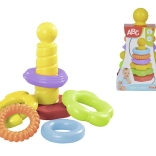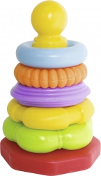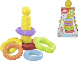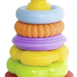 Piramide con anelli colorati è uno strumento ideale per lo sviluppo delle capacità motorie e della combinazione nei bambini. Contiene cinque anelli colorati di diverse forme.
