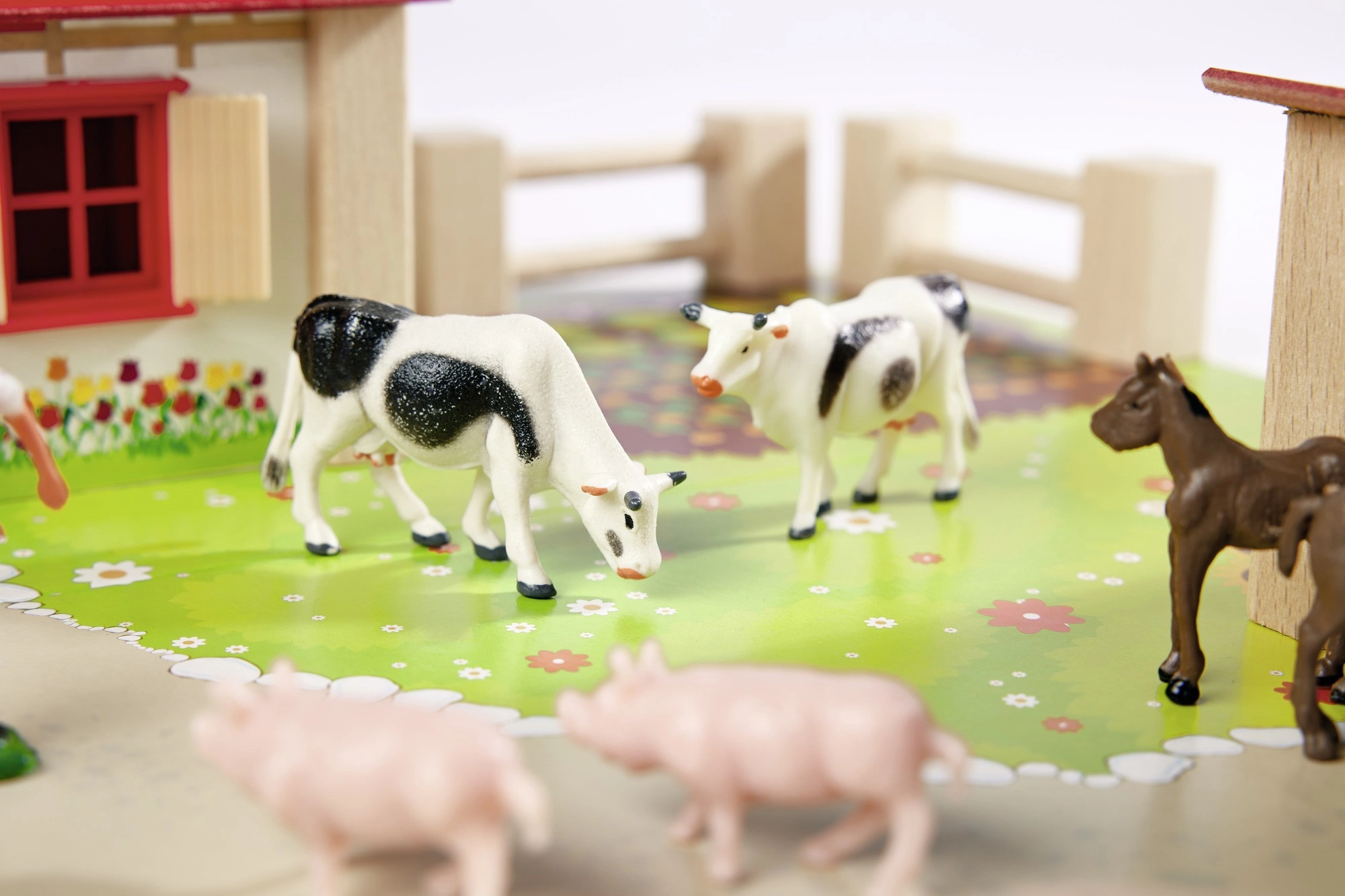 Il tappetino con strade, prati e orto e le recinzioni collegabili facilitano la creazione di paddock e la costruzione di storie di fattoria personalizzate.