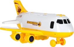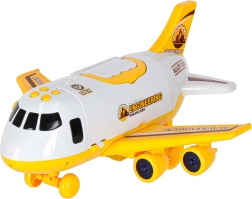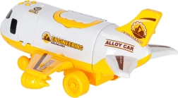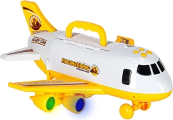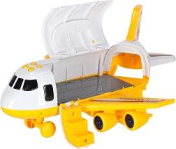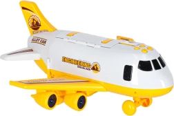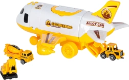 Grande aereo da trasporto per bambini che può portare a bordo tre macchine da cantiere e un set di segnali stradali. Offre rampa apribile, accesso laterale, effetti LED luminosi e suoni realistici azionati da quattro pulsanti. Grazie alle ali rimovibili e alla comoda maniglia si trasporta e si ripone facilmente.