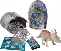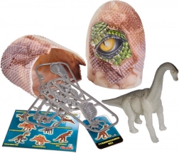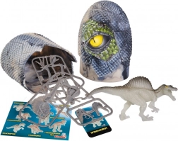 Questa divertente figurina di dinosauro nell’uovo porta gioia nella scoperta a bambini e adulti. Ogni uovo nasconde una figurina dettagliata da 10 cm, un mini puzzle dello scheletro del dinosauro e una stilosa card da collezione. Il dinosauro si illumina al buio, per stupire anche a luci spente.
