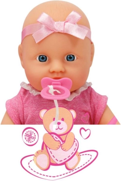 La bambola è vestita con un abitino rosa con stampa di orso e fiocchetto. È un compagno preferito per ogni giorno.