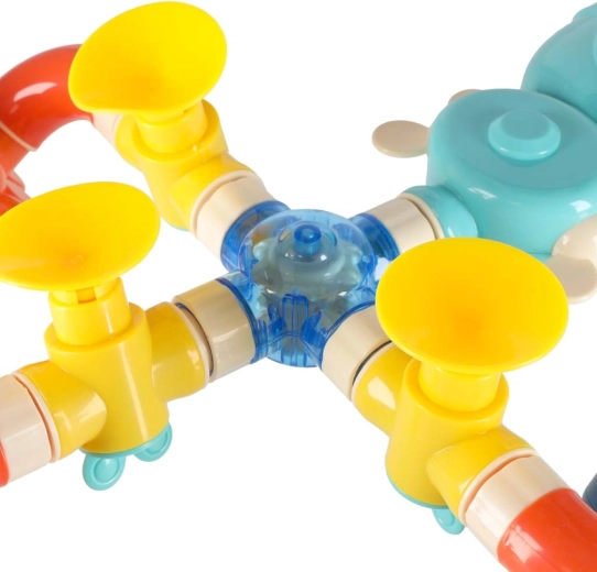 Il montaggio è rapido e stabile grazie alle ventose. I pezzi possono essere riorganizzati liberamente, cambiando l’ordine degli animaletti, scollegando i singoli tubi e, tramite valvole rotanti, chiudere o aprire il flusso d’acqua. I bambini creano così combinazioni sempre nuove e imparano il ragionamento logico.