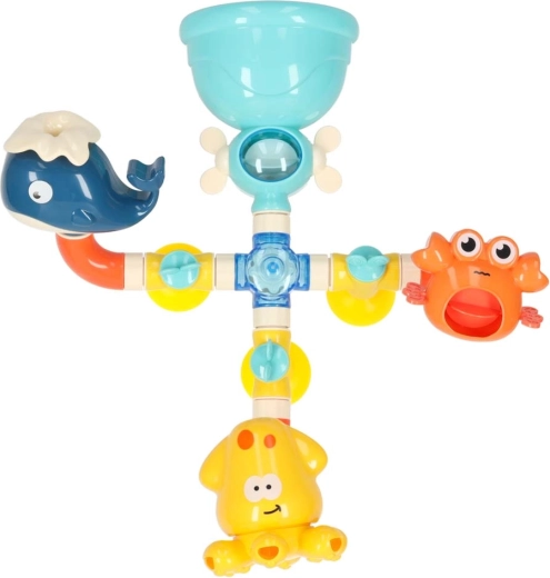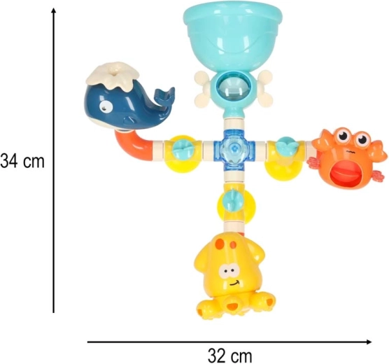 Questa colorata pista d’acqua da vasca è composta da imbuti, tubi e divertenti uscite a forma di balena, granchio e polpo. I bambini versano semplicemente l’acqua dall’alto e osservano come attraversa il sistema, fa girare le ruote e fuoriesce da varie aperture come una fontana o una cascata. Materiali sicuri e bordi arrotondati sono ideali per il gioco quotidiano con l’acqua.