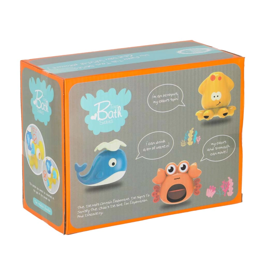 Balena, granchio e polpo trasformano il gioco con l’acqua in un’avventura. I bambini possono cambiarne la posizione e provare diverse uscite dell’acqua.