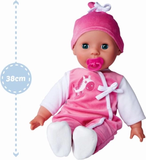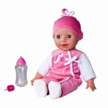 La bambola include accessori come biberon e ciuccio, che facilitano il gioco di ruolo e la cura del bambolotto.