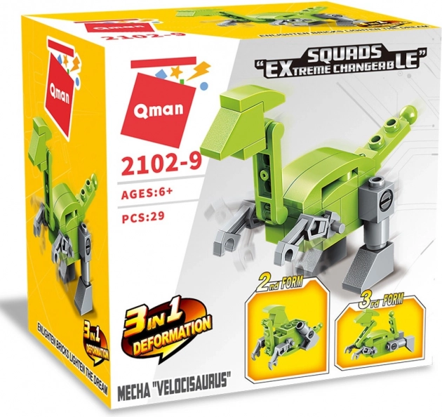Qman Squros offre grande divertimento per i piccoli costruttori. Con questo set è possibile creare un robot, un dinosauro o un proprio modello unico grazie alla possibilità di assemblaggio multiplo. Il set è composto da mattoncini di plastica colorati realizzati in plastica ABS resistente e di alta qualità, che è sicura e durevole.