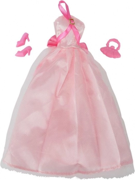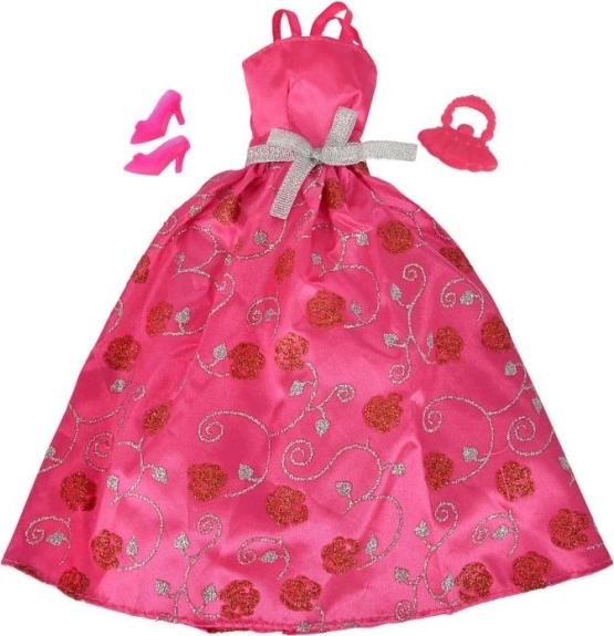 Il set di abiti include anche tacchi alti abbinati e una borsa che completano l'elegante set per bambole.
