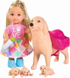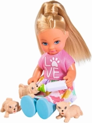 Con questo incantevole set i bambini si divertiranno per ore a prendersi cura degli animaletti. La bambola Evi ha un outfit alla moda e, insieme alla mamma cagnolina e ai tre cuccioli, crea un mondo perfetto per storie fantasiose. Sono inclusi anche accessori che favoriscono il role-play e l’apprendimento della responsabilità attraverso il gioco.