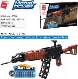 Qman Model Power 6006 porta divertimento e sicurezza nelle mani dei tuoi bambini. Una volta assemblato, il modello funzionante del famoso fucile d'assalto AK-47 permette di sparare freccette in schiuma sicure ed è completamente compatibile con i set di costruzioni di altri marchi.