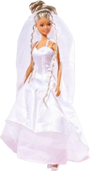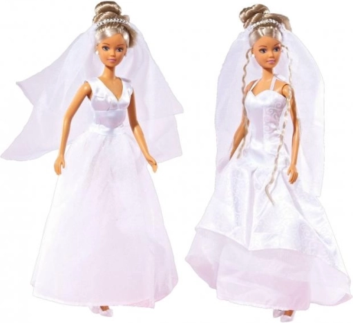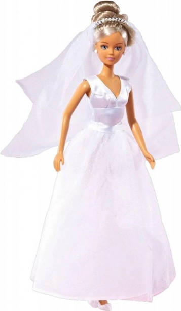La bambola Steffi sposa arriva con splendidi abiti da sposa bianchi con velo, che spiccano per i dettagli delicati e l'aspetto elegante. È una scelta perfetta per i bambini che amano le bambole fashion e desiderano rivivere magici momenti nuziali.